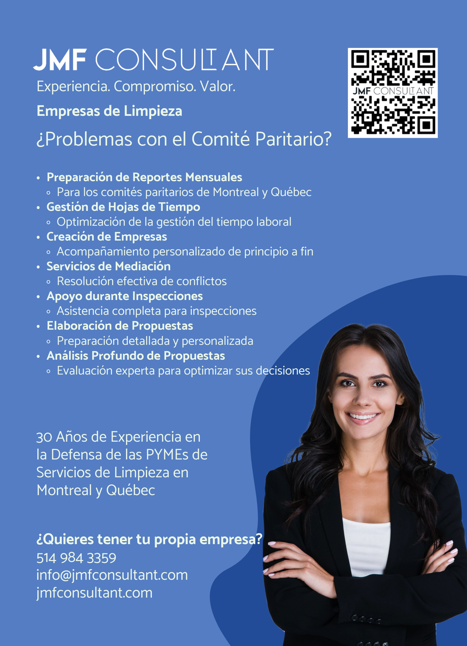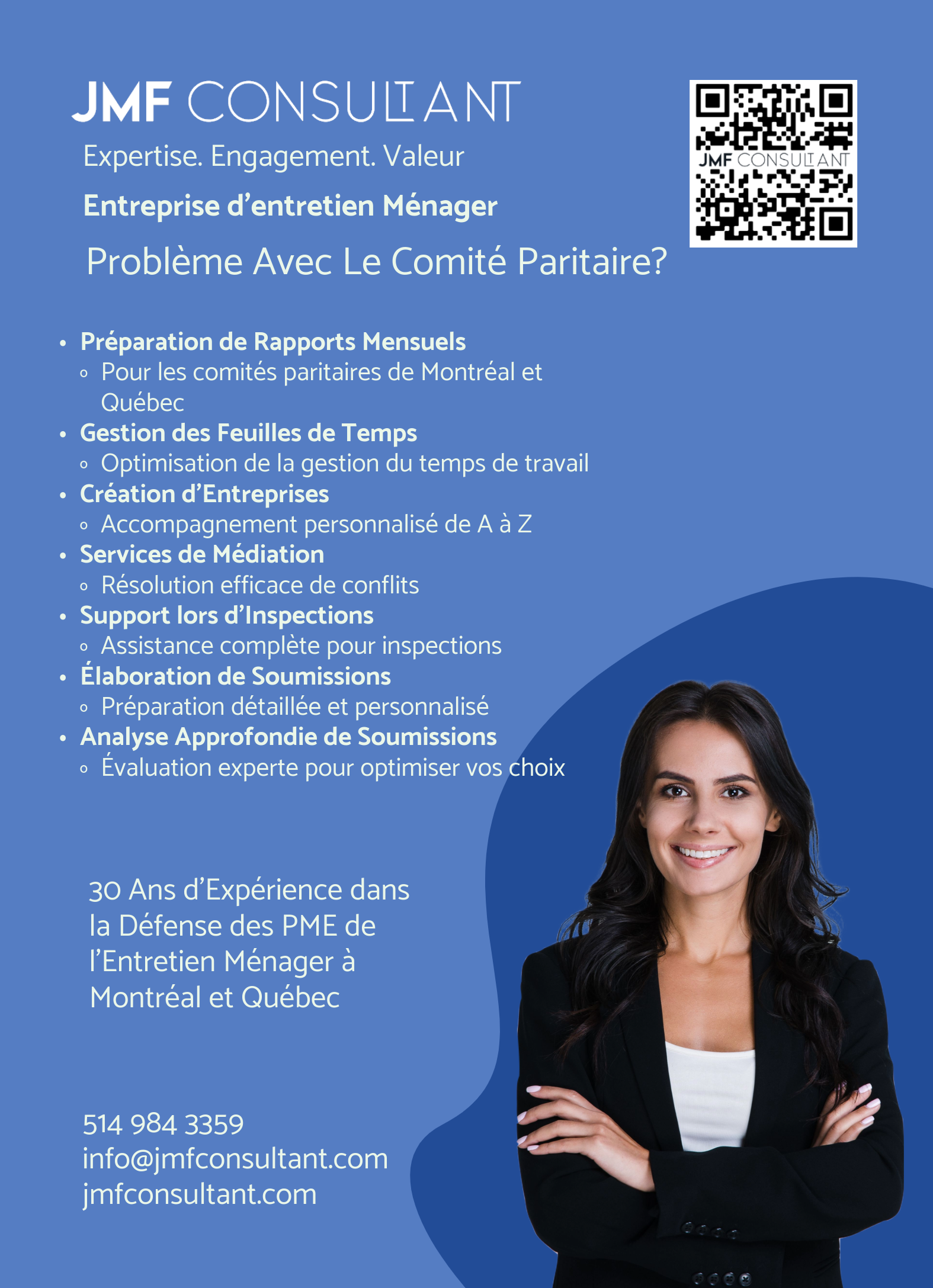 Essor Gestion doveva raccontare la transizione dai servizi finanziari alle pulizie commerciali e industriali su larga scala. I team acquisti di edifici governativi e università non avevano ancora visibilità sulle prove di conformità e sulla preparazione per strutture complesse.